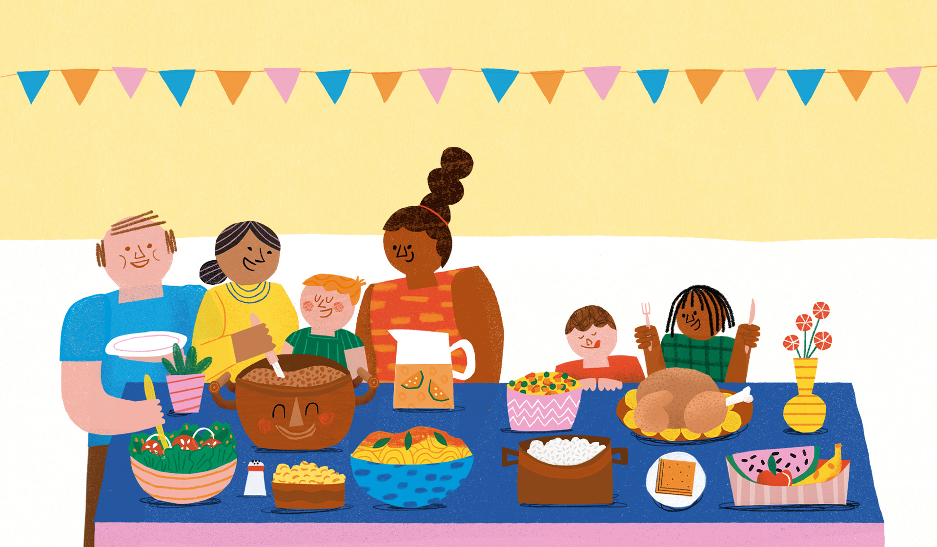 Editorial design and illustrations for a children's book about solidarity in the fight against hunger in Brazil.