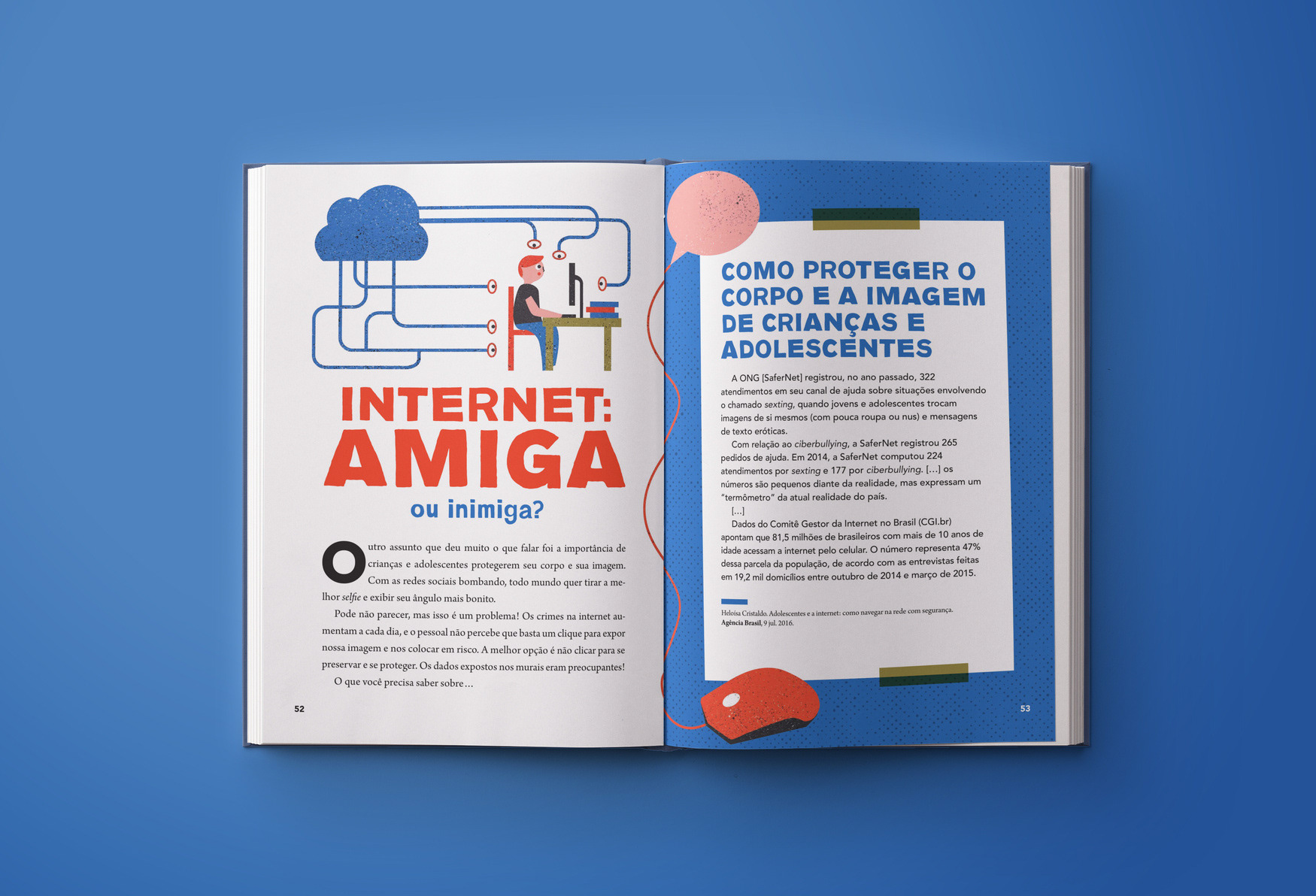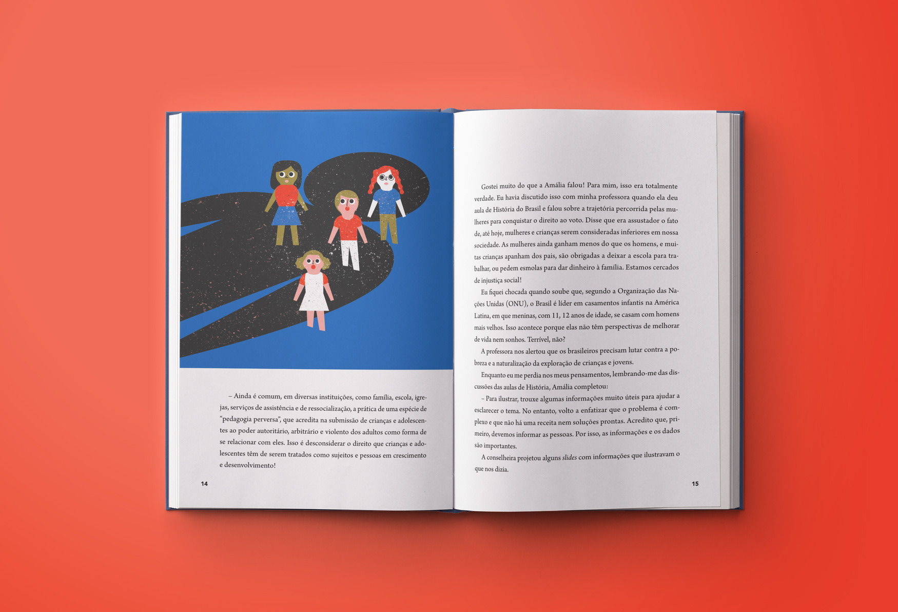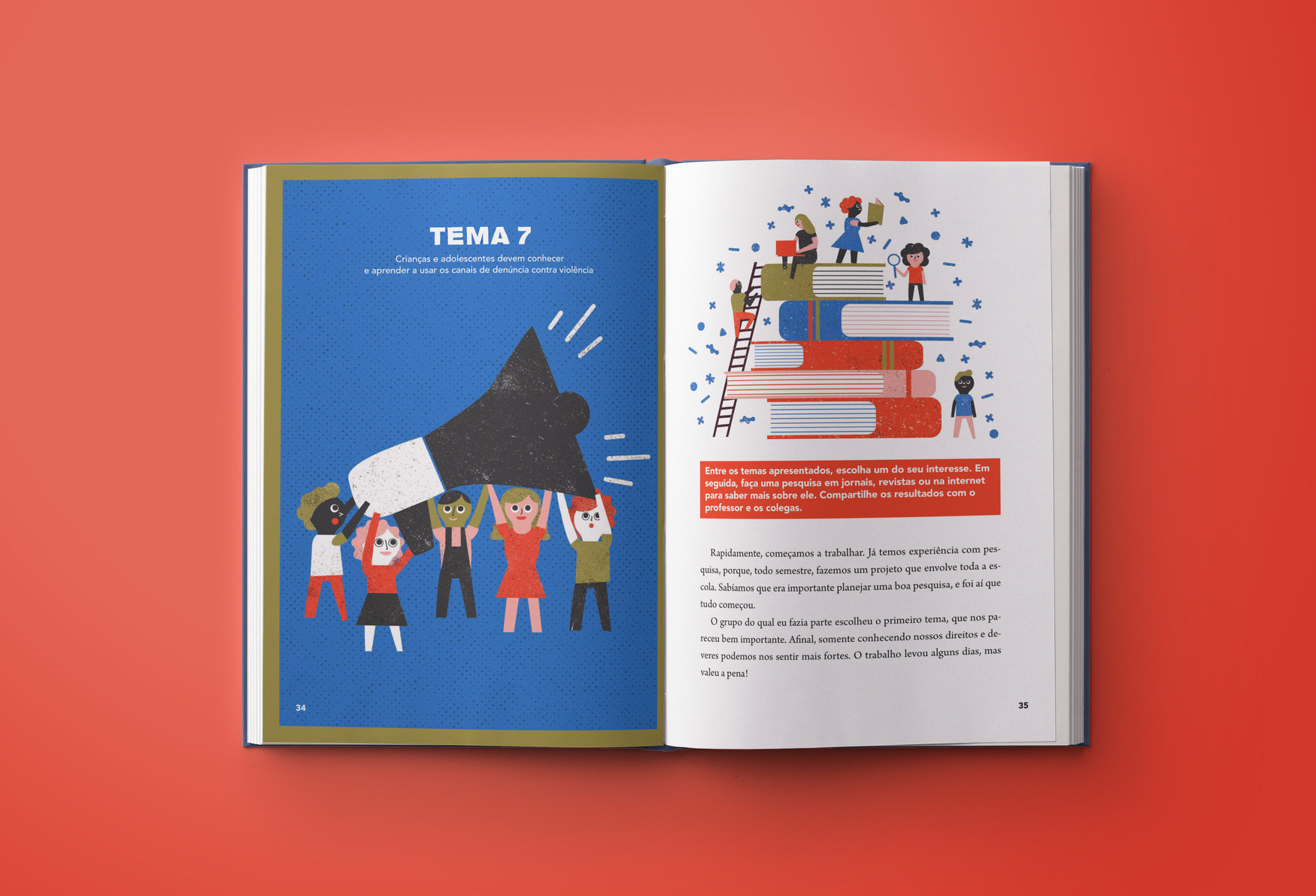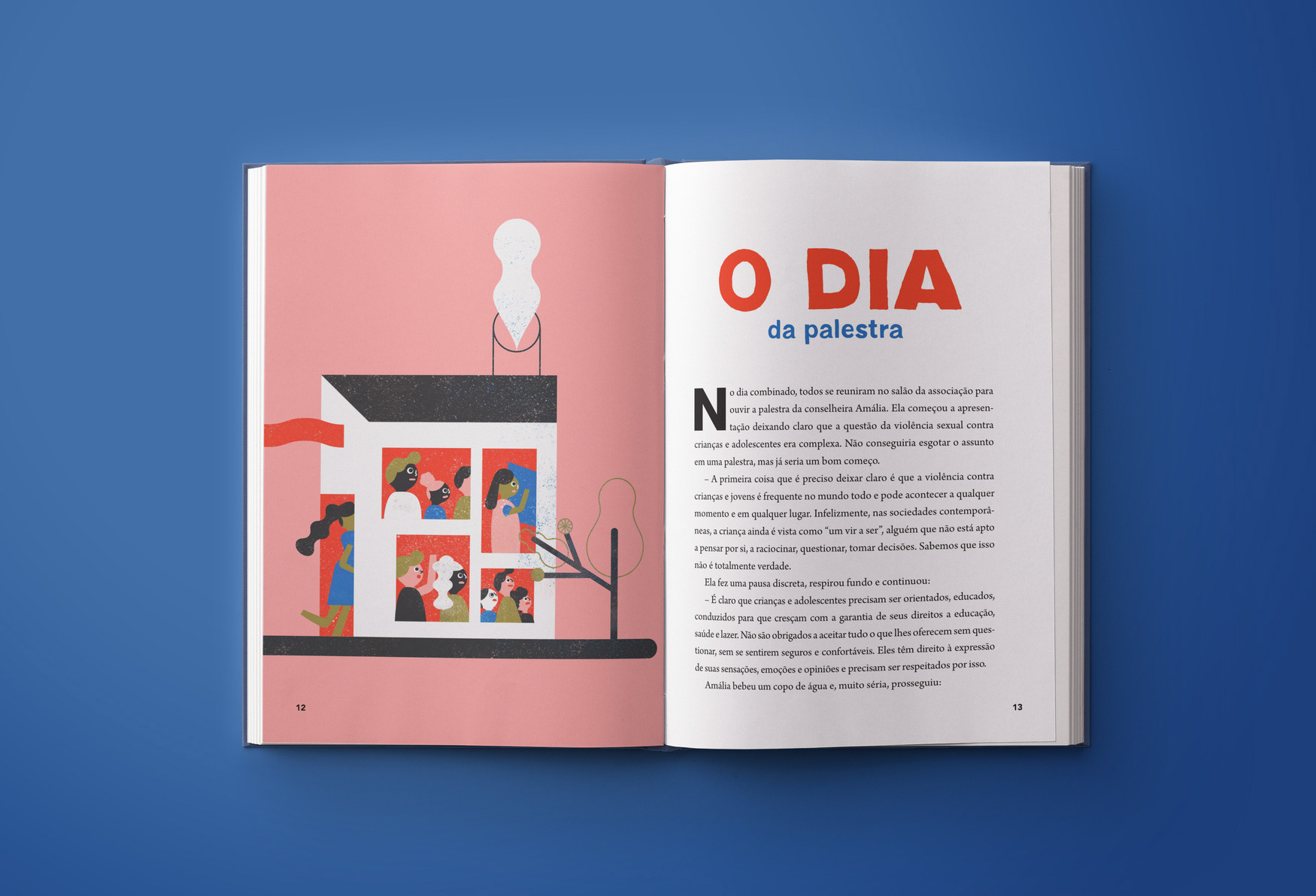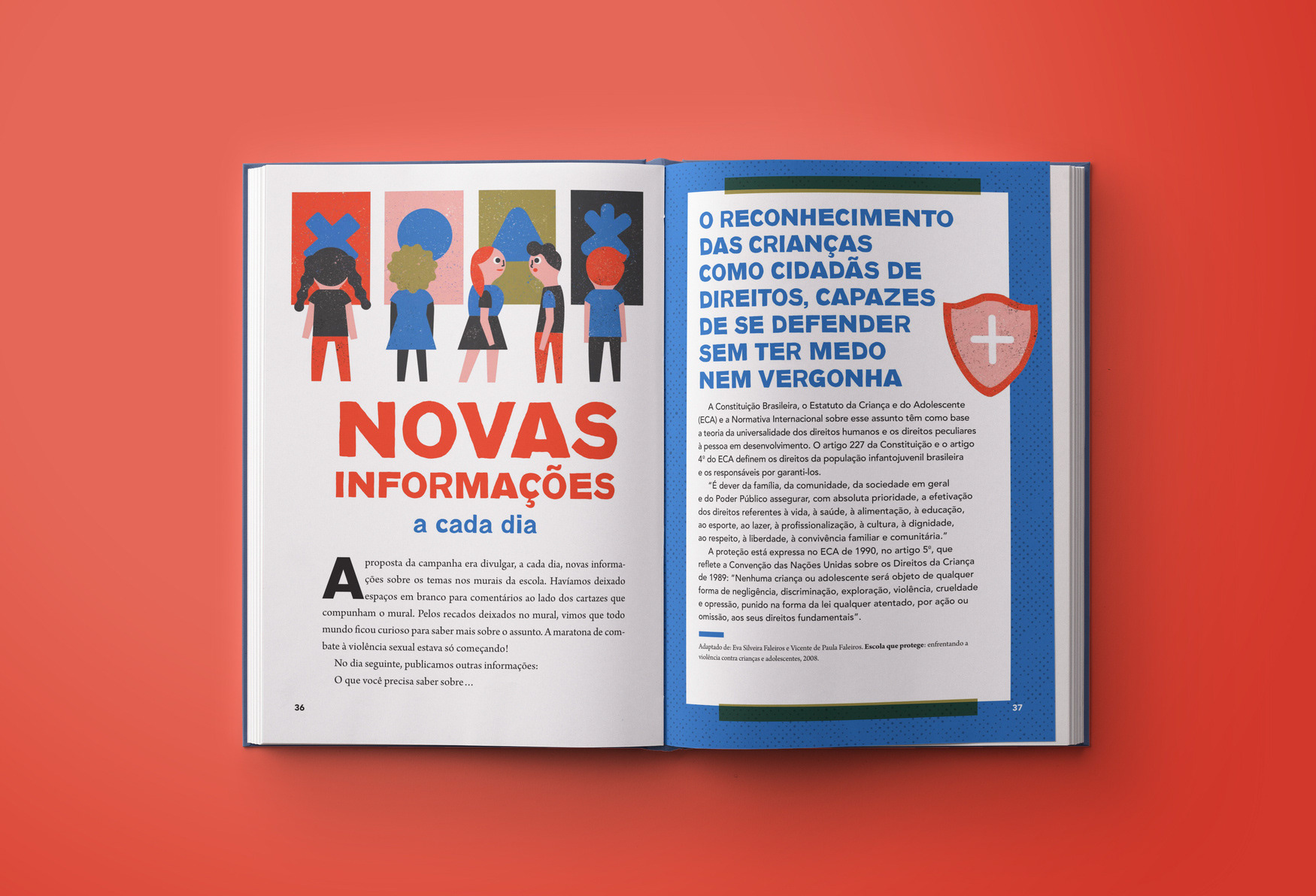 Editorial design and illustrations for a text book about policies of confrontation of sexual violence against children and teenagers.