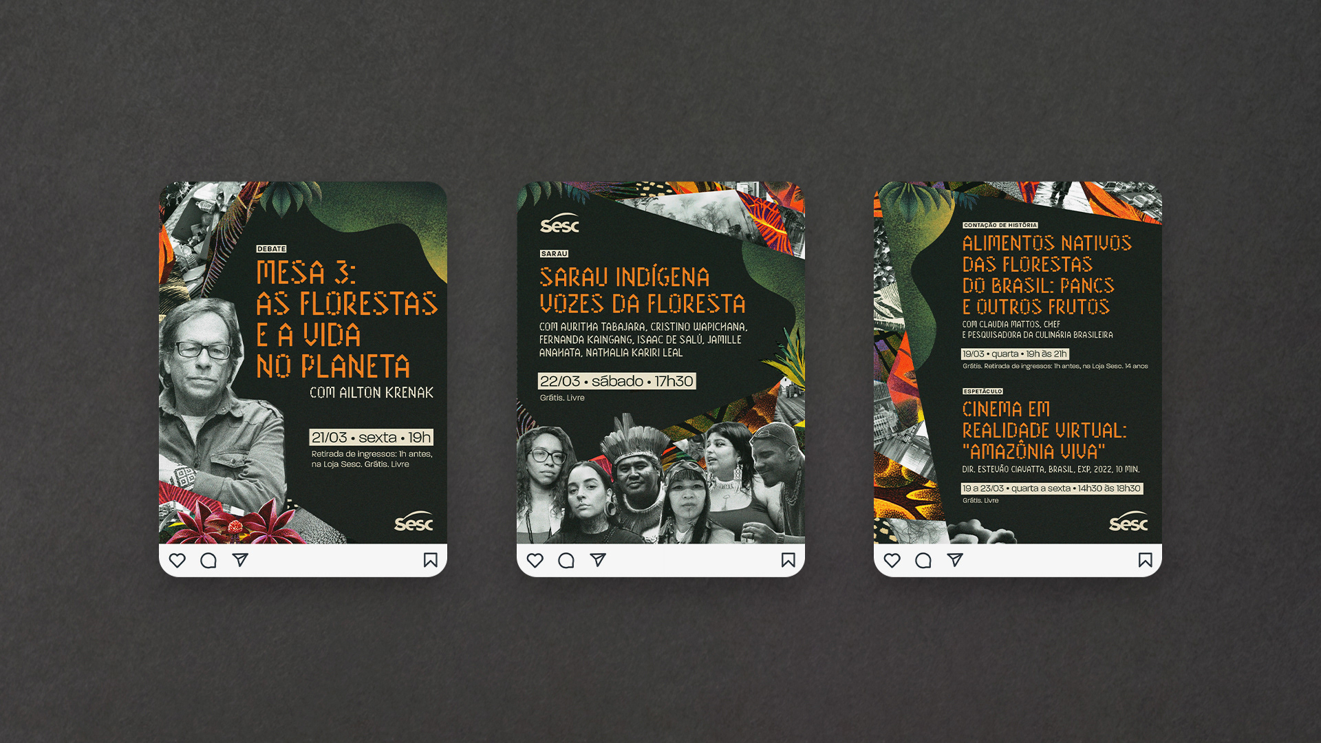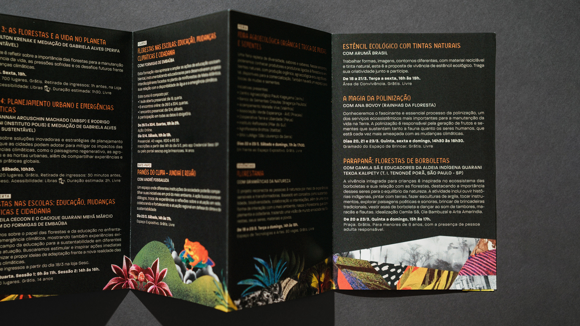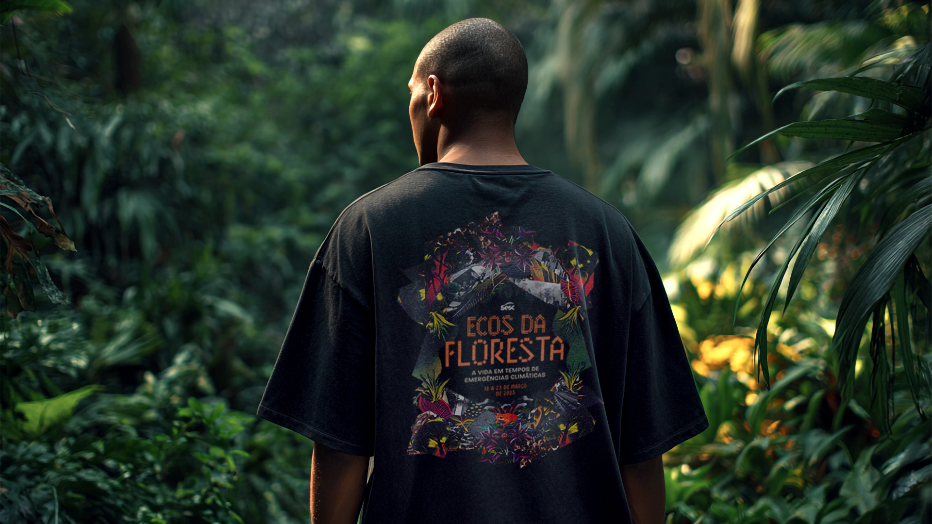 Visual identity for "Ecos da Floresta", a week long workshop that took place in Sesc Jundiaí to discuss how environmental degradation, deforestation, and other factors impact forest ecosystems and, consequently, life on the planet.